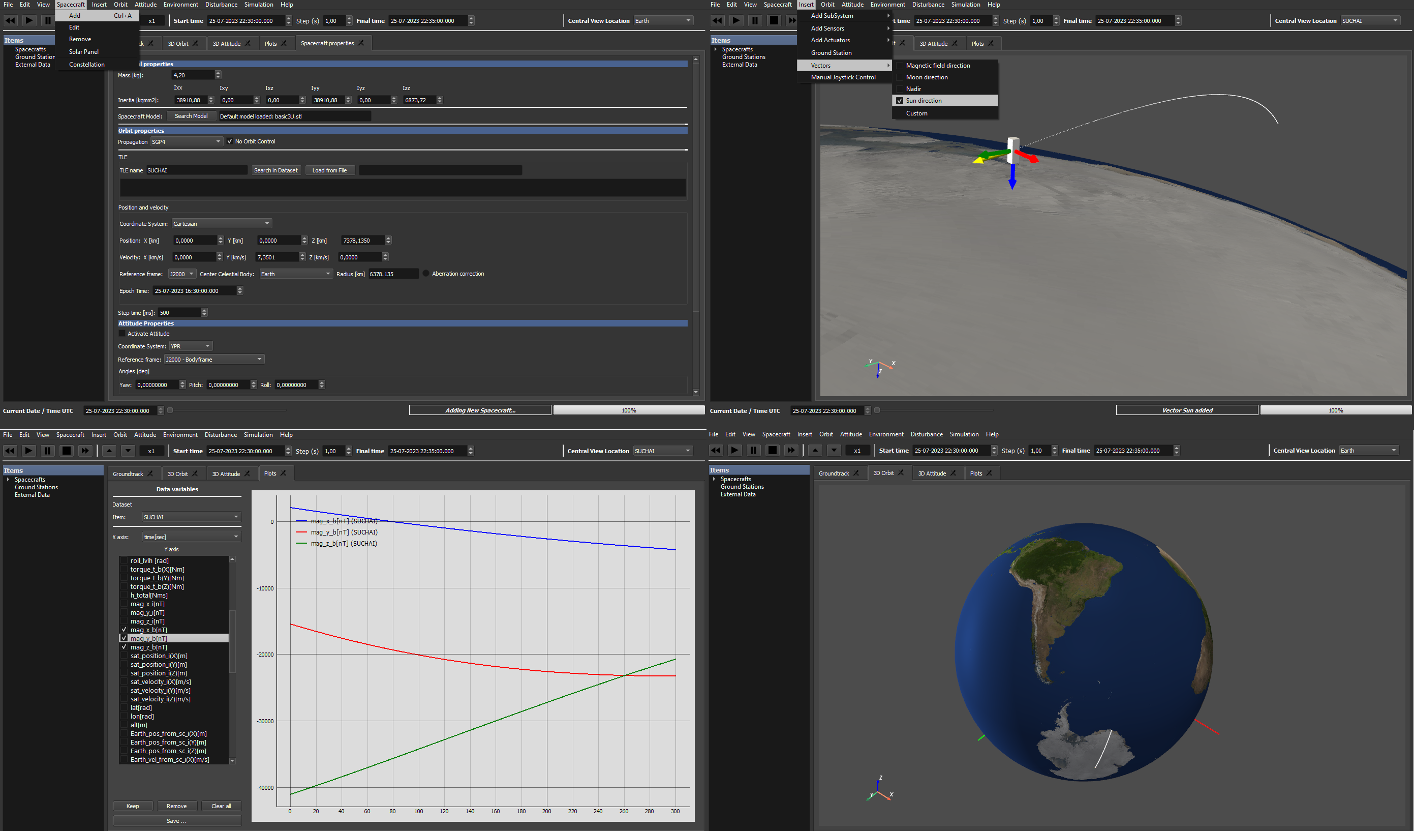 If you have real data from gyros, magnetometers, sun sensors, among others, you can import them